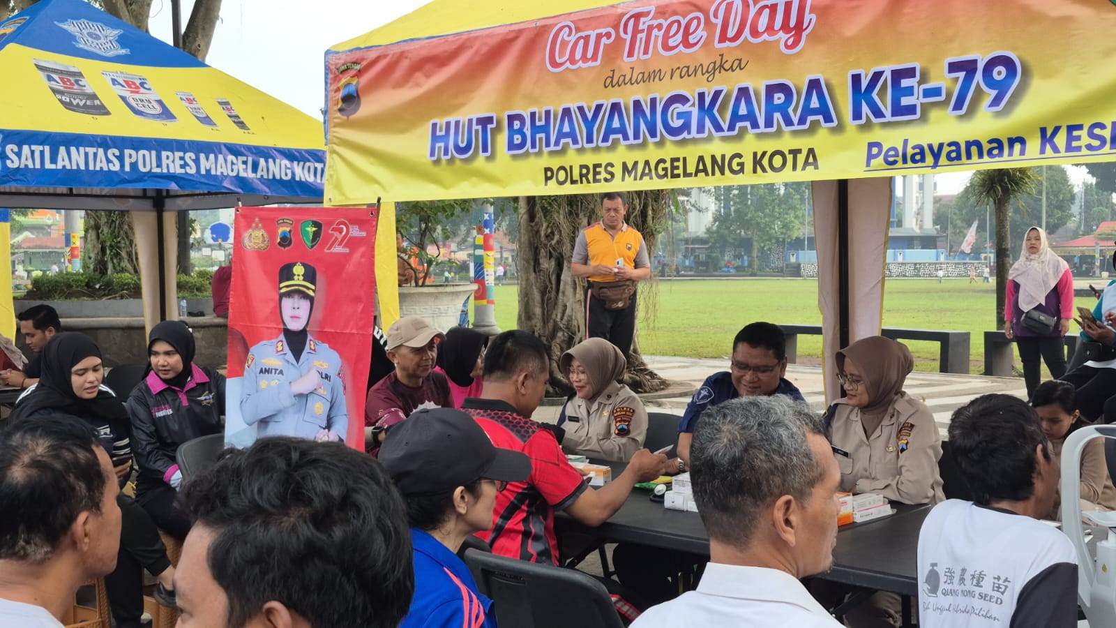 Lintastidarnews.com, Kota Magelang – Car Free Day di Jalan Alun-Alun Selatan Kota Magelang pada Minggu pagi (22/6/2025) terasa berbeda dari biasanya. Dalam rangka memperingati Hari Bhayangkara ke-79, Polres Magelang Kota menyelenggarakan kegiatan “Car Free Day Semarak Bhayangkara” yang diwarnai dengan pelayanan publik lengkap dan hiburan untuk masyarakat.