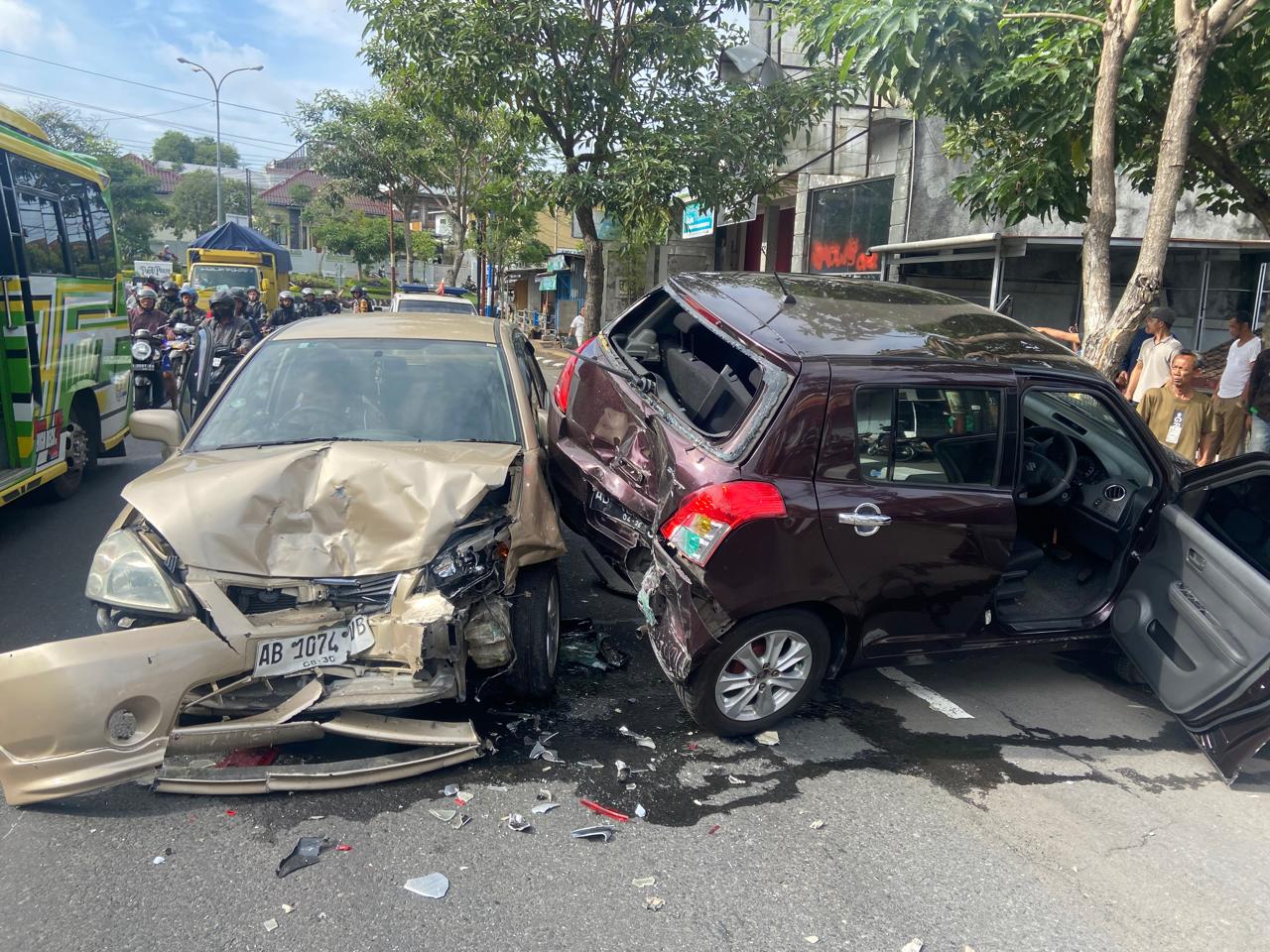 Kecelakaan melibatkan antara Mobil Suzuki Baleno dengan Nopol AB 1074 VB dengan Mobil Suzuki Swift Nopol AB 1233 JT.