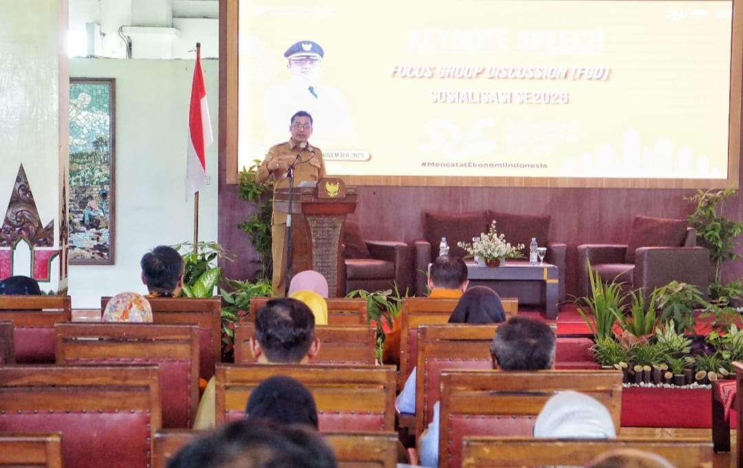“Pelaksanaan Sensus Ekonomi menjadi landasan penting bagi perumusan kebijakan pembangunan ekonomi, baik di tingkat pusat maupun daerah. Data yang akurat membantu pemerintah merancang program pembangunan lebih tepat sasaran, meningkatkan daya saing, dan memperkuat ketahanan ekonomi masyarakat,” kata Bupati saat memberikan arahan dalam Focus Group Discussion (FGD) Sosialisasi SE 2026 di Pendopo Setda Kabupaten Magelang, Selasa (18/11/2025).