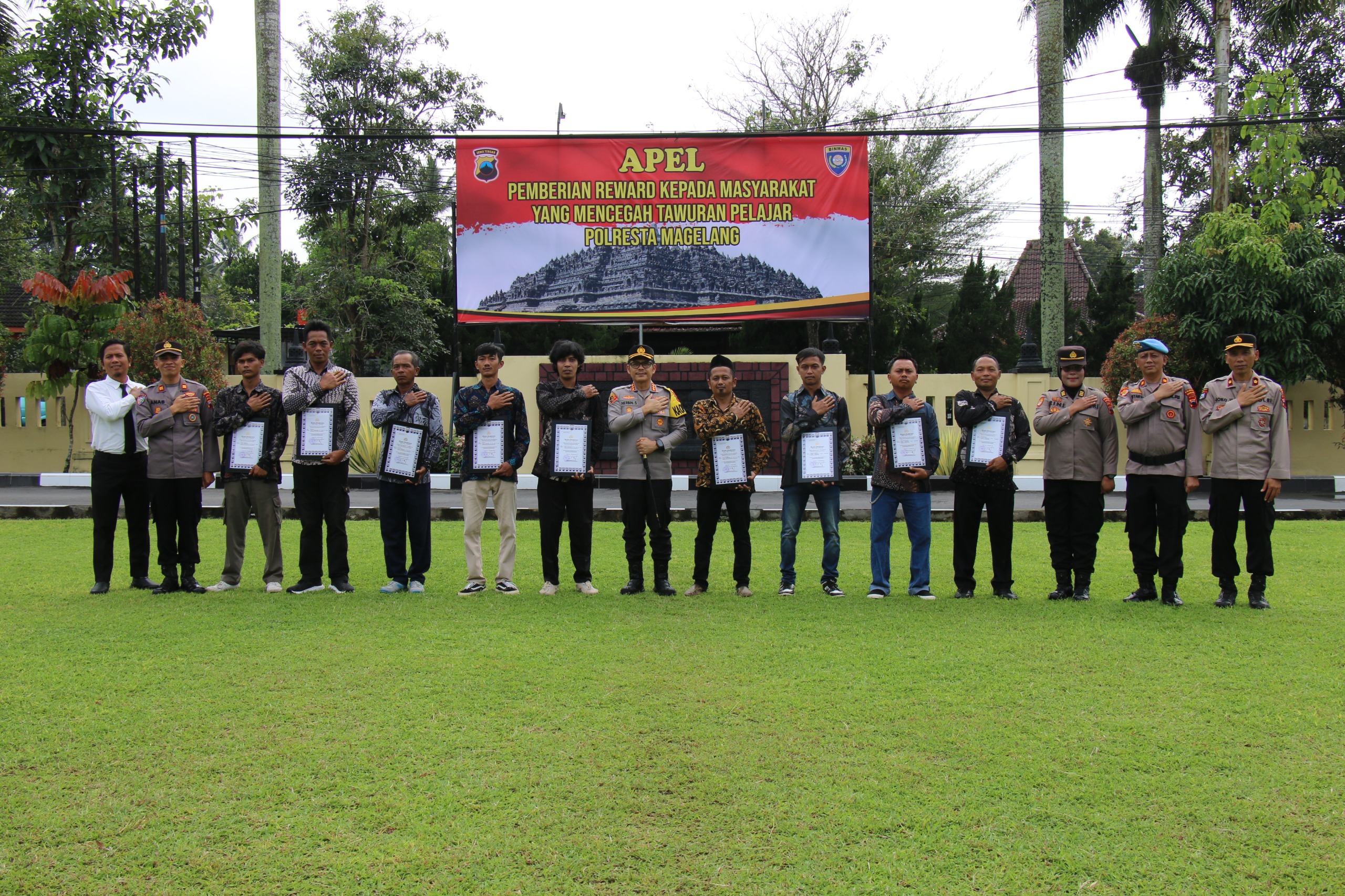 LINTASTIDARNEWS.COM, MAGELANG — Sebanyak 11 warga dari berbagai kecamatan di Kabupaten Magelang menerima penghargaan dari Polresta Magelang atas keberanian dan kepedulian mereka dalam menggagalkan aksi tawuran pelajar sepanjang tahun 2025.