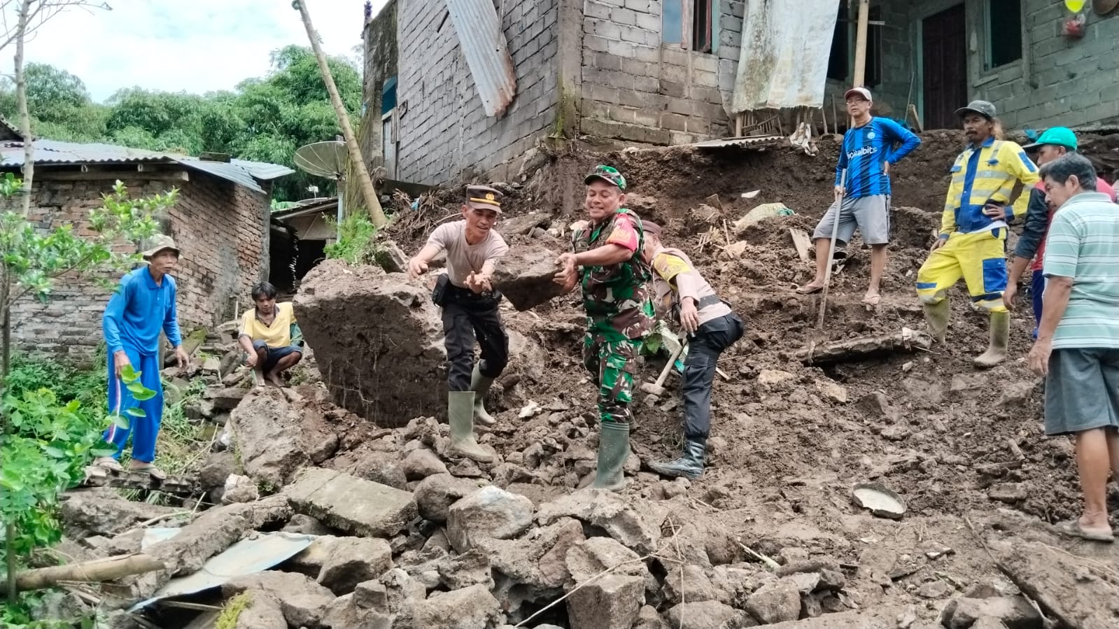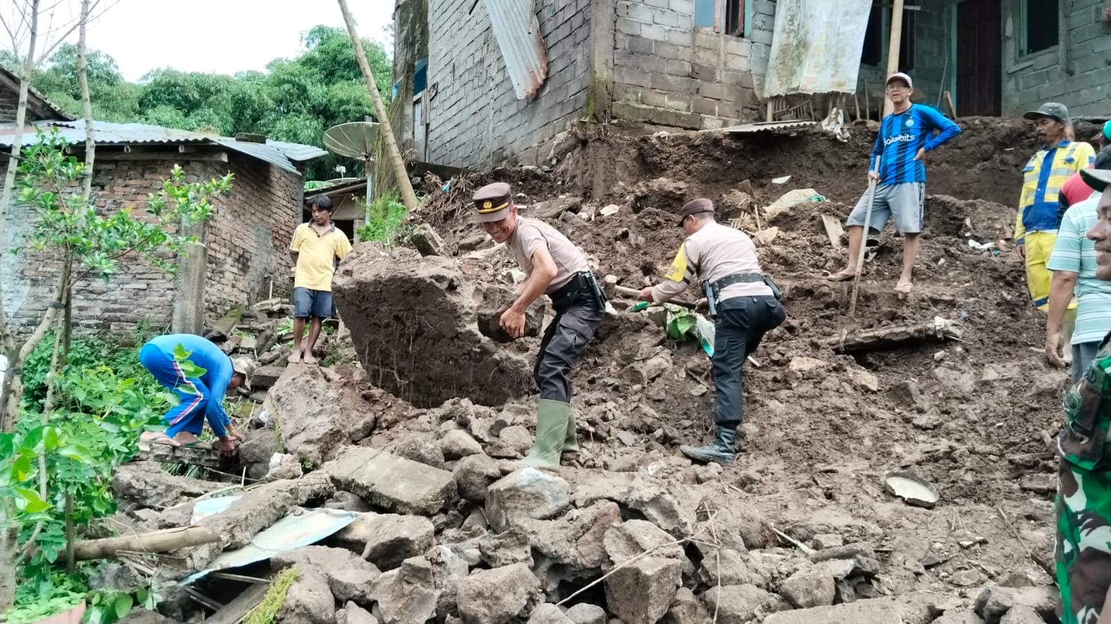 Beruntung, meskipun kerusakan cukup parah, tidak ada korban jiwa dalam kejadian ini. Penghuni rumah sementara tinggal di rumah saudara karena rumah mereka mengalami retakan yang cukup berisiko ambruk. Saat ini, proses pembersihan material longsor masih terus dilakukan oleh warga, BPBD, TNI, Polri, dan relawan yang bahu-membahu meringankan beban masyarakat yang terdampak.
