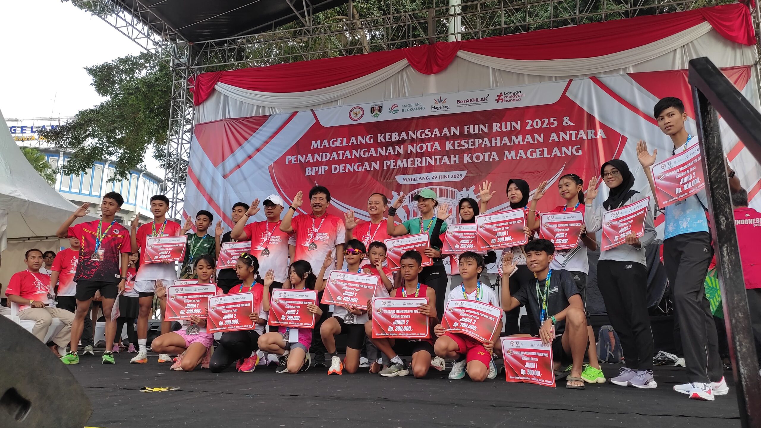 Lintastidarnews.com, Kota Magelang – Magelang Kebangsaan Fun Run 2025 Bersama Badan Pembinaan Ideologi Pancasila Republik Indonesia (BPIP RI) dengan Start dimulai dari Alun-Alun Kota Magelang pukul 06.00 WIB, dengan rute mengelilingi ikon-ikon kota seperti Jalan Pemuda, Taman Badaan, hingga kembali ke titik awal. Peserta terdiri dari masyarakat umum, pelajar, ASN, komunitas olahraga, hingga perwakilan instansi kesehatan, termasuk dari RSUD Tidar Kota Magelang, Minggu (29/06/2025).