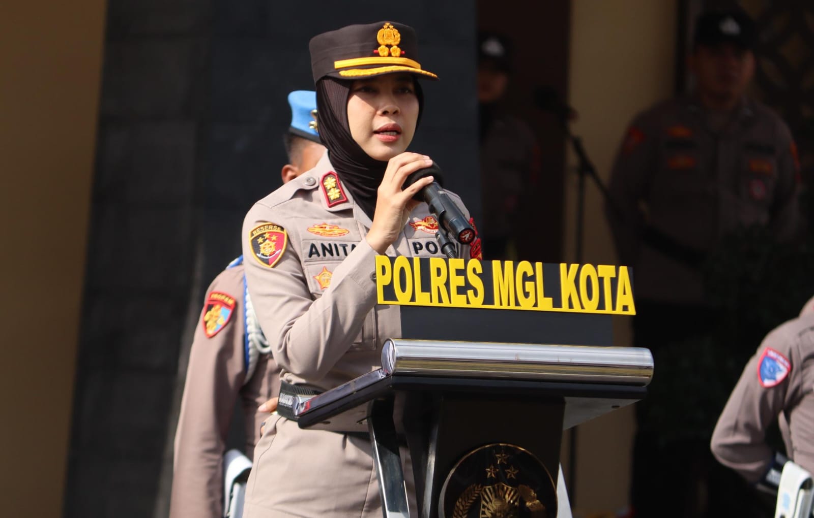 Dalam amanatnya, Kapolres Magelang Kota AKBP Anita Indah Setyaningrum, S.I.K., M.H., menyampaikan apresiasi kepada seluruh peserta apel yang hadir dan berpartisipasi aktif.