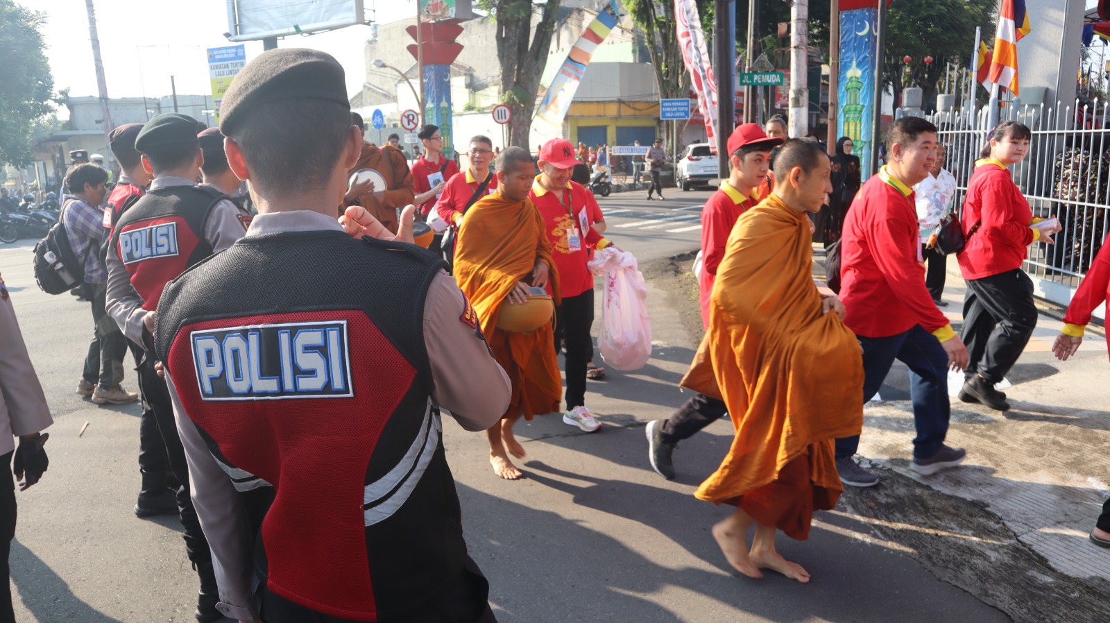 Lintastidarnews.com,Magelang – Sebanyak 34 Biksu menjalankan ritual keagamaan Pindapata di sepanjang Jalan Pemuda, Kota Magelang, pada Sabtu (10/5/2025). Kegiatan sakral ini mendapat pengamanan penuh dari Polres Magelang Kota demi kelancaran dan kenyamanan seluruh peserta serta masyarakat sekitar.