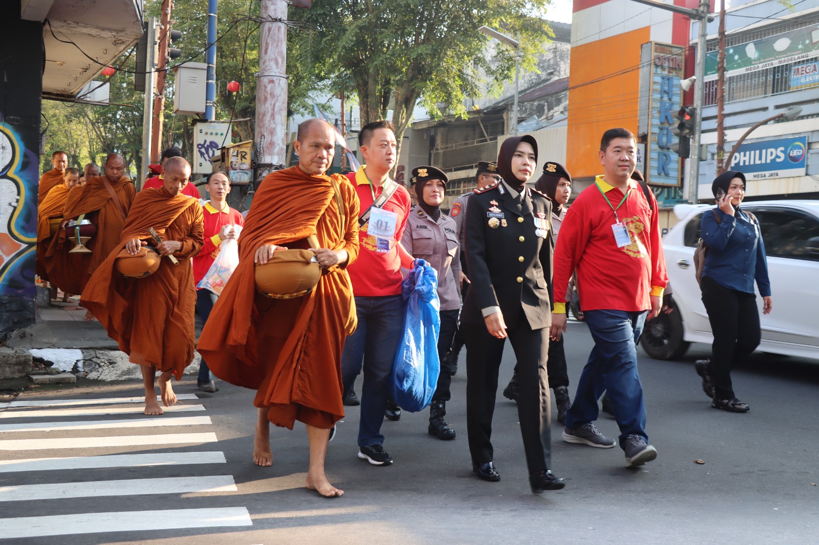 Lintastidarnews.com,Magelang – Sebanyak 34 Biksu menjalankan ritual keagamaan Pindapata di sepanjang Jalan Pemuda, Kota Magelang, pada Sabtu (10/5/2025). Kegiatan sakral ini mendapat pengamanan penuh dari Polres Magelang Kota demi kelancaran dan kenyamanan seluruh peserta serta masyarakat sekitar.