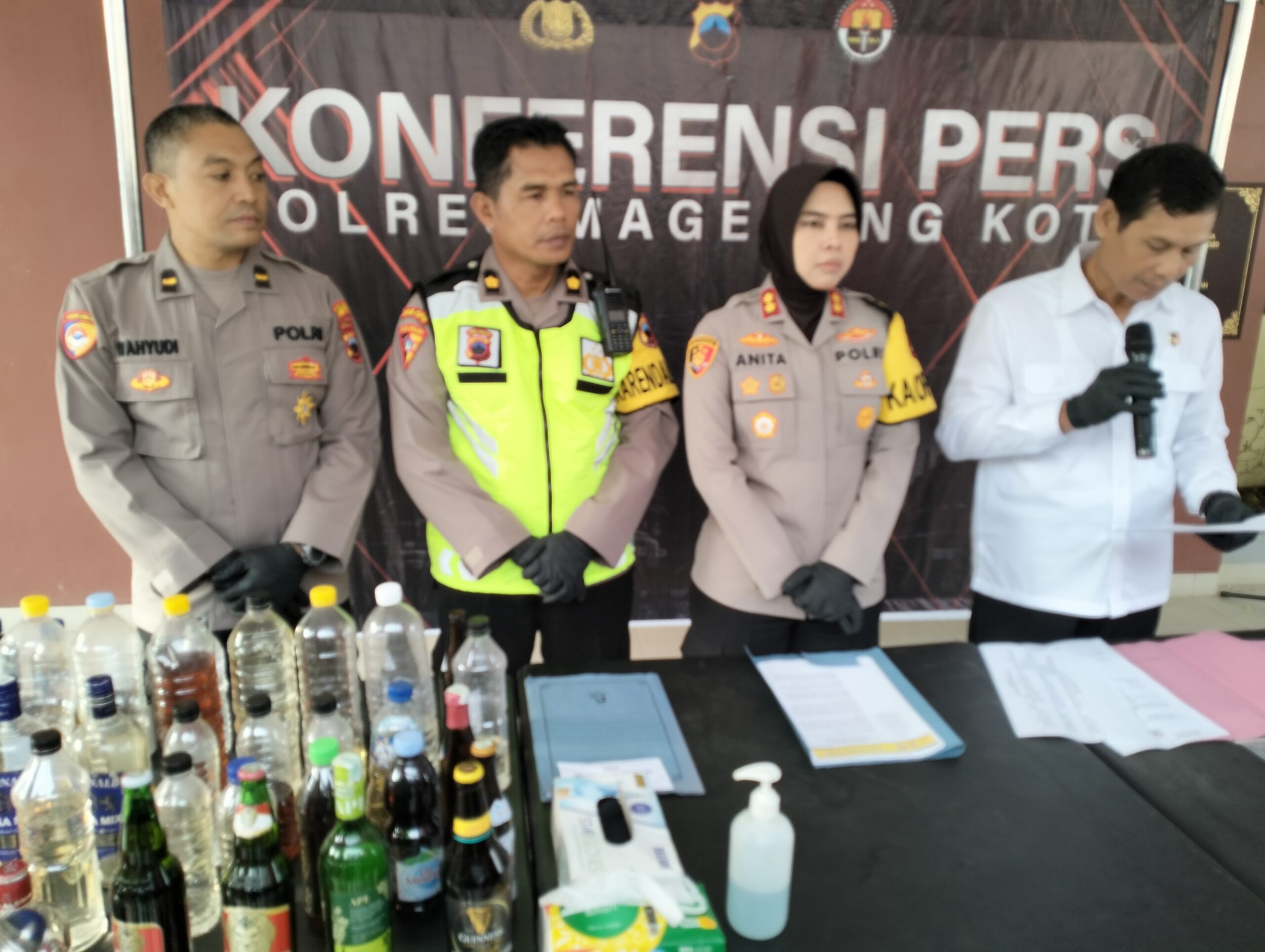 Dalam Konferensi Pers tersebut dihadirkan sejumlah Pelaku kasus narkoba yang berhasil diamankan Satresnarkoba Polres Magelang Kota. Serta sejumlah Barang Bukti (BB) seperti minuman keras (Miras) berbagai kemasan, jenis dan merk dan BB lainnya.