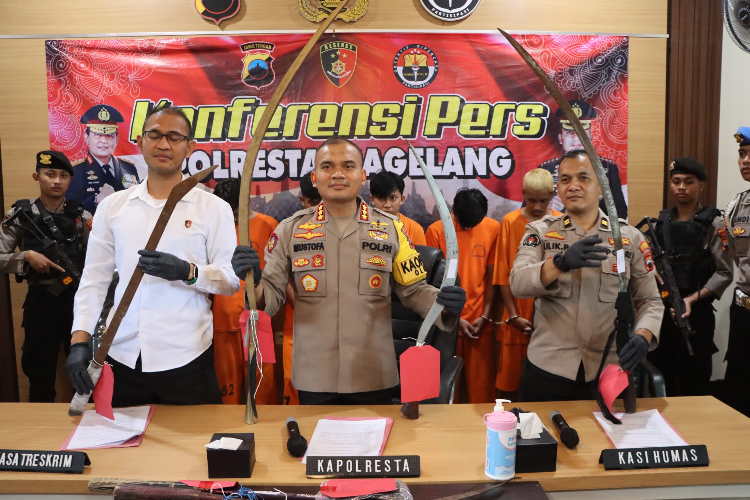 Dalam kesempatan tersebut, Kapolresta Magelang mengimbau kepada para warga Magelang agar mengawasi anak-anaknya yang menyimpan senjata tajam, yang ikut dalam anggota geng dan keluar malam hari.