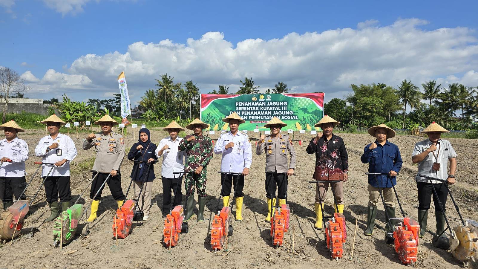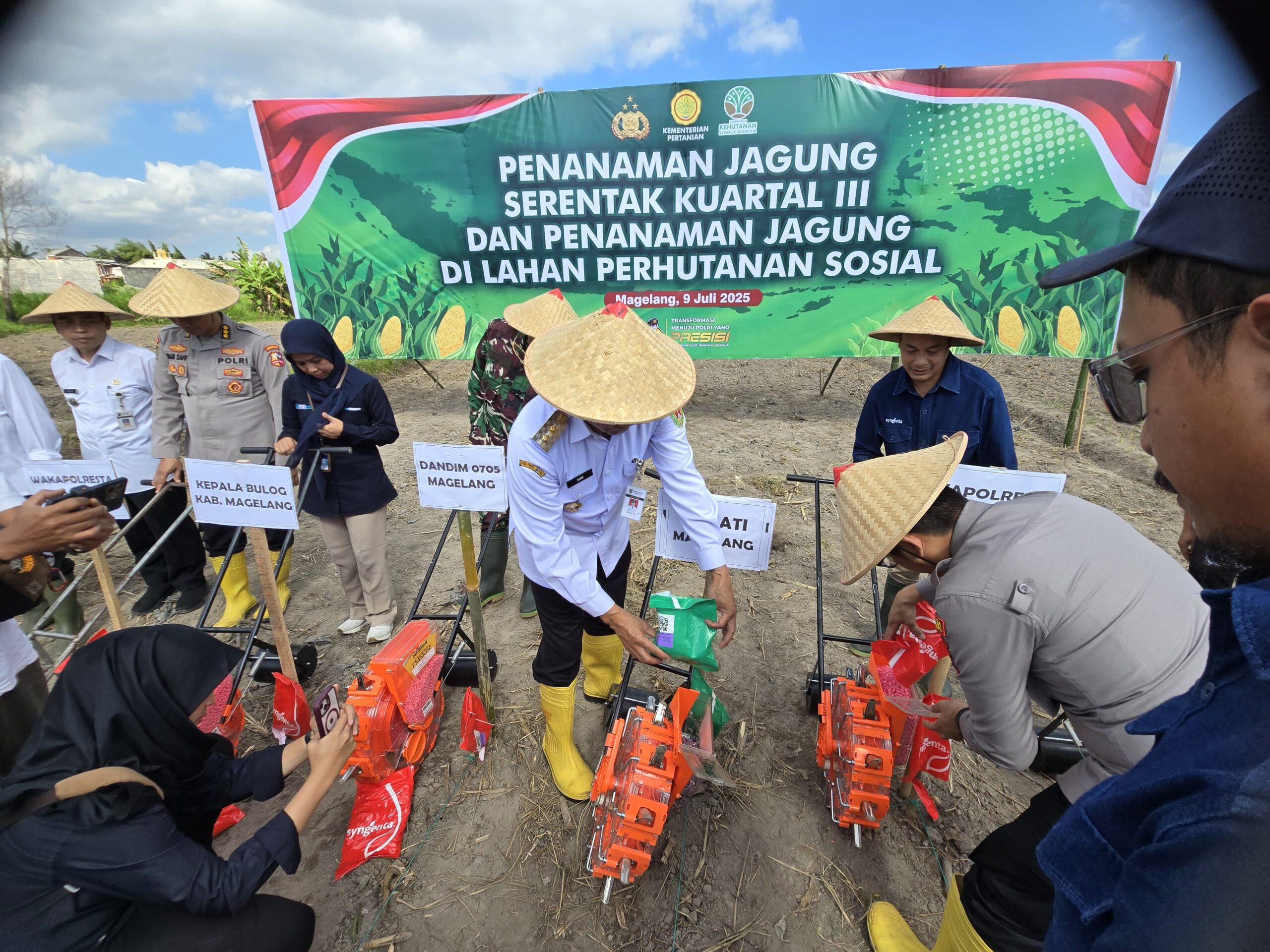 Lintastidarnews.com, Magelang — Kepolisian Resor Kota (Polresta) Magelang menggelar kegiatan Penanaman Jagung Serentak Kuartal III Tahun 2025 di lahan pertanian Dusun Gatak Gamol, Desa Pucungrejo, Kecamatan Muntilan, Kabupaten Magelang. Pada kamis (10/07/2025).