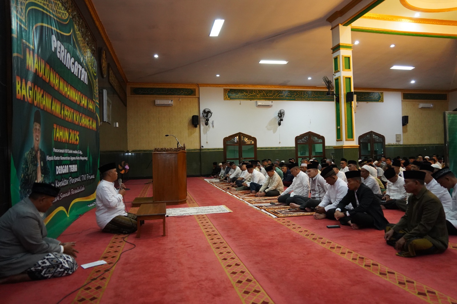 Lintastidarnews.com, Magelang – Akademi Militer (Akmil) memperingati Maulid Nabi Muhammad Saw 1447 Hijriah/2025 Masehi dengan penuh khidmat di Masjid Taqwa Pancaarga Satu, Rabu (10/9) malam. Kegiatan ini dipimpin langsung oleh Wakil Gubernur Akmil, Brigjen TNI Pramungkas Agus T., S.I.Pem., M.H., serta dihadiri keluarga besar Akmil, mulai dari perwira, bintara, tamtama, pegawai negeri sipil, hingga Persit Kartika Chandra Kirana Cabang BS Akmil.