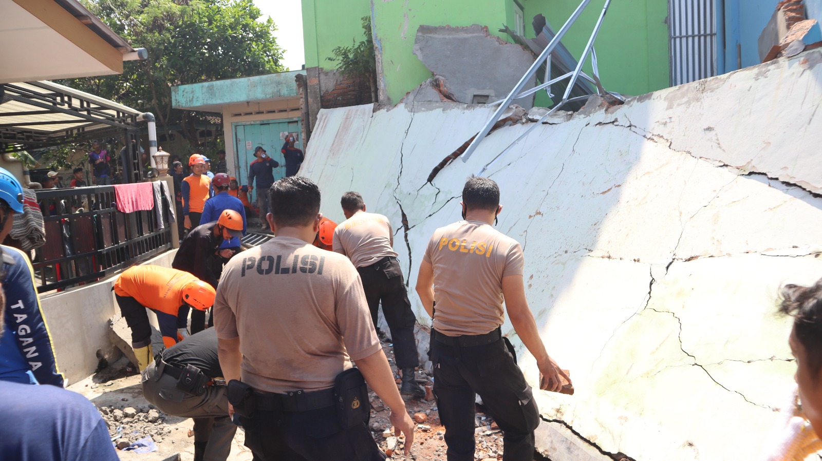 “Alhamdulillah tidak ada korban jiwa dalam peristiwa ini. Kami bersama unsur terkait dan masyarakat langsung bergotong royong membersihkan material serta menata bagian tembok yang berpotensi roboh kembali,” ujar AKP Tri Iwan Kusumo.
