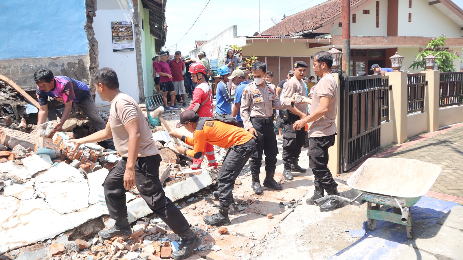 “Alhamdulillah tidak ada korban jiwa dalam peristiwa ini. Kami bersama unsur terkait dan masyarakat langsung bergotong royong membersihkan material serta menata bagian tembok yang berpotensi roboh kembali,” ujar AKP Tri Iwan Kusumo.