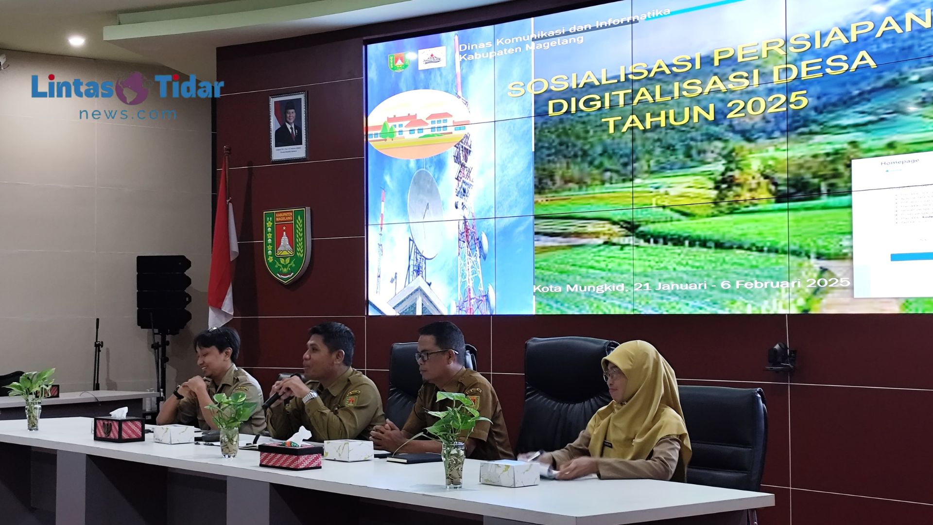 LINTASTIDARNEWS.COM – Dalam rangka mendorong peningkatan kualitas pelayanan publik di tingkat desa, Dinas Komunikasi dan Informatika (Kominfo) Kabupaten Magelang menggelar Sosialisasi Persiapan Digitalisasi Desa. Kegiatan ini berlangsung di Ruang Command Center (CCR) Pusaka Gemilang Setda Kabupaten Magelang pada Selasa (21/01/2025) dan akan berlangsung hingga 6 Februari 2025.