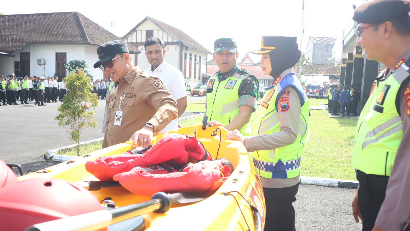 Sebagai penutup, Wali Kota bersama Kapolres Magelang Kota, Dandim 0705/Magelang, dan pejabat lintas instansi melaksanakan pengecekan langsung peralatan penanggulangan bencana. Pemeriksaan ini memastikan seluruh perlengkapan dalam kondisi siap operasional dan dapat digunakan kapan pun dibutuhkan.